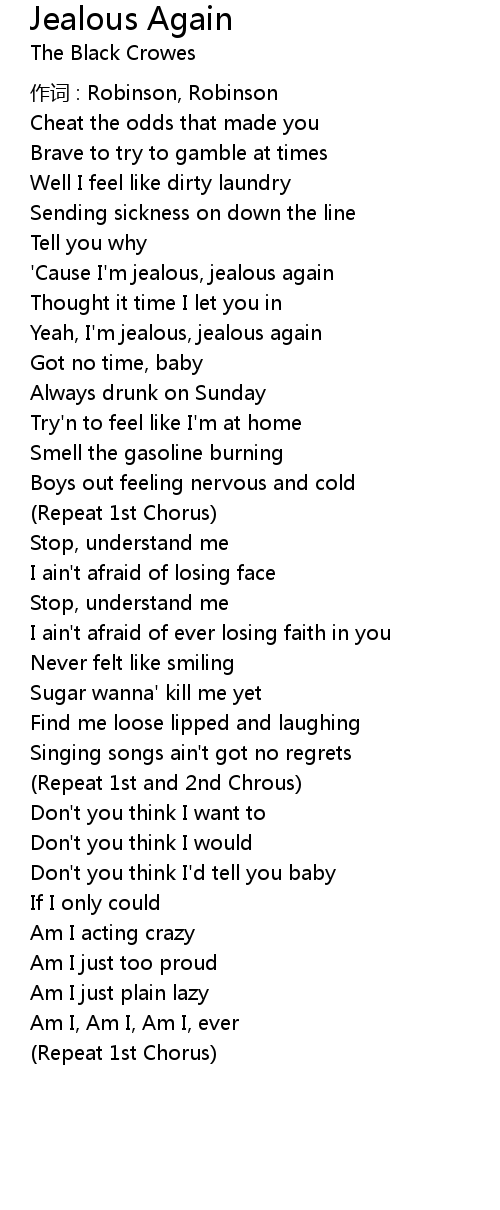 | ' Cause I' m jealous, jealous again | |