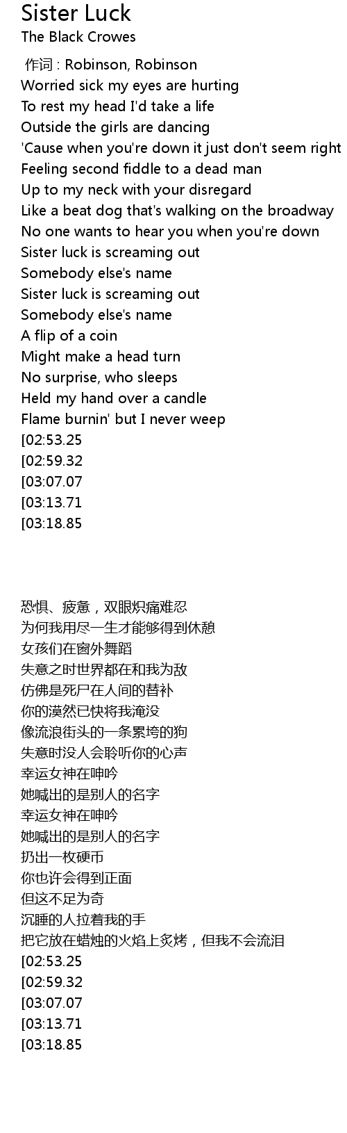 | [04:02.72][03:07.07] | Sister luck is screaming out |