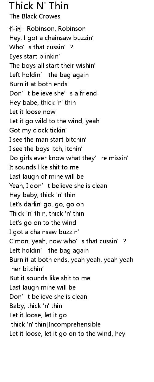 | Let it loose now to the wind Incomprehensible thick ' n' thin Incomprehensible | |