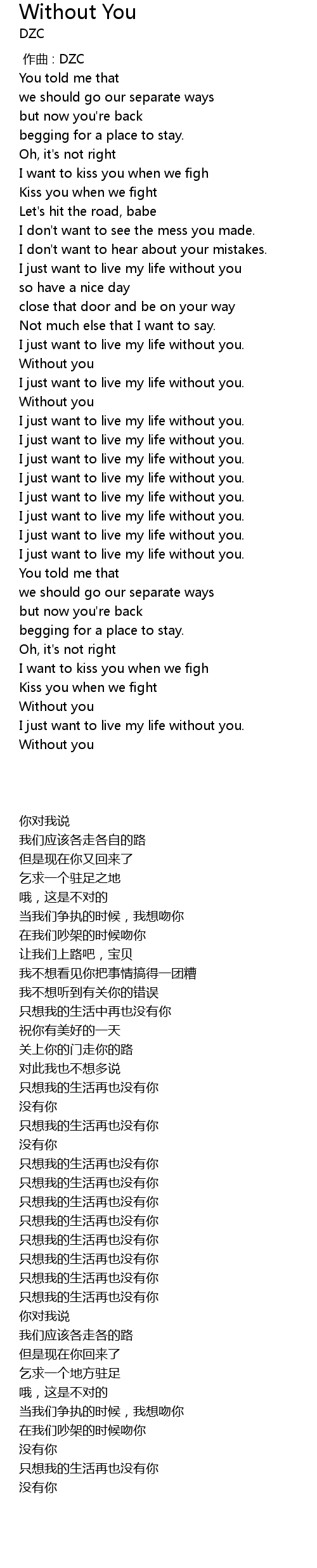 | [00:38.17] | I just want to live my life without you. |