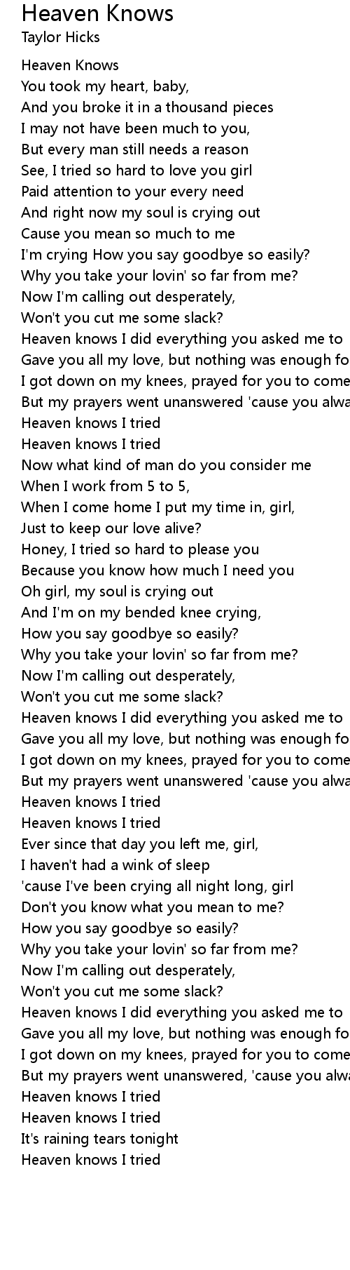 Heaven knows I did everything you asked me to |