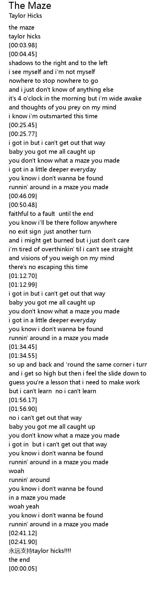 | [02:42.86] | 永远支持taylor hicks!!!! |