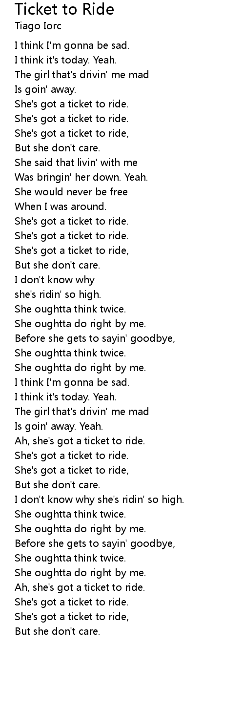 Ah, she's got a ticket to ride. |