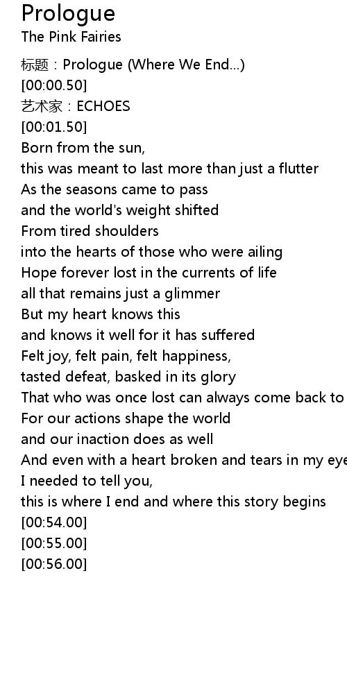 | [00:00.00] | 标题:Prologue (Where We End...) |