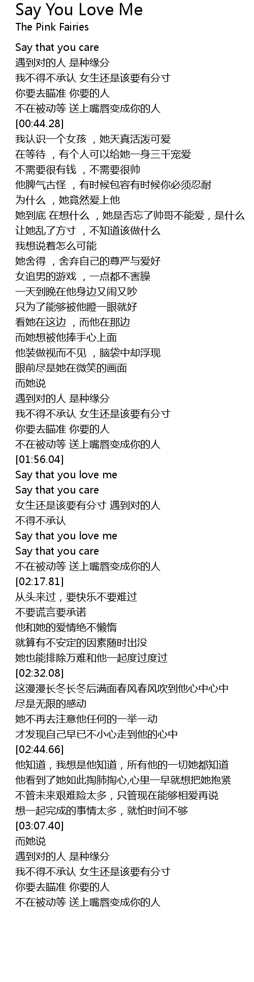 | [02:10.56] | Say that you love me |