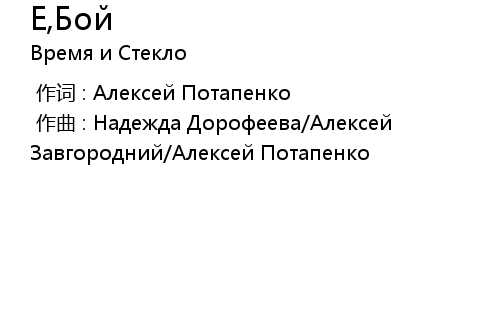 | [00:00.00-1] | 作曲 : Надежда Дорофеева/Алексей Завгородний/Алексей Потапенко |