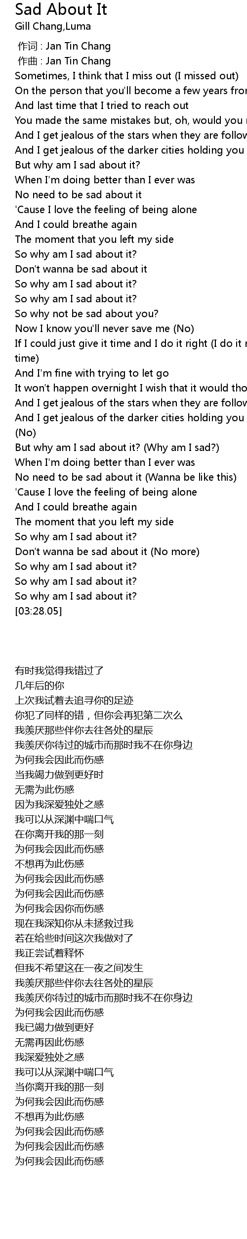 | [02:29.57] | But why am I sad about it? (Why am I sad?) |