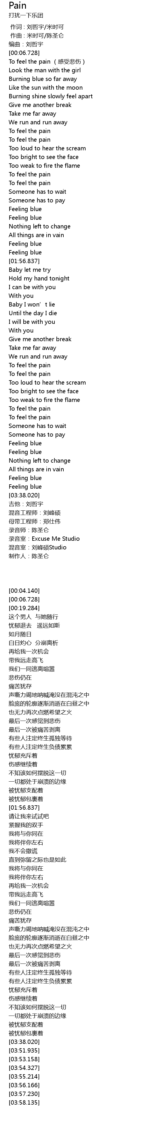 | [00:19.284] | To feel the pain gǎn shòu bēi shāng |