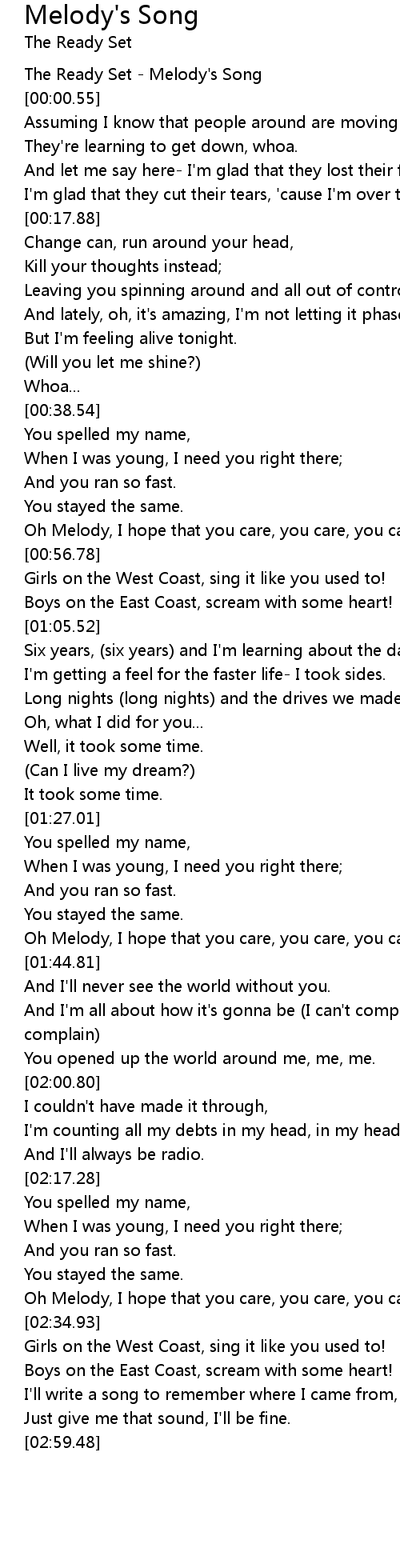 The Ready Set - Melody's Song |