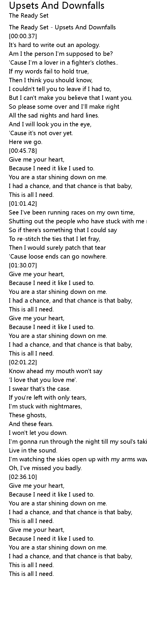 The Ready Set - Upsets And Downfalls |