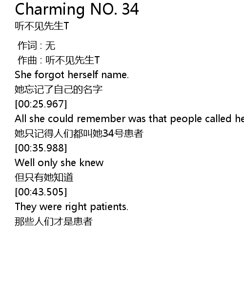 | [00:32.230] | 她只记得人们都叫她34号患者 |
