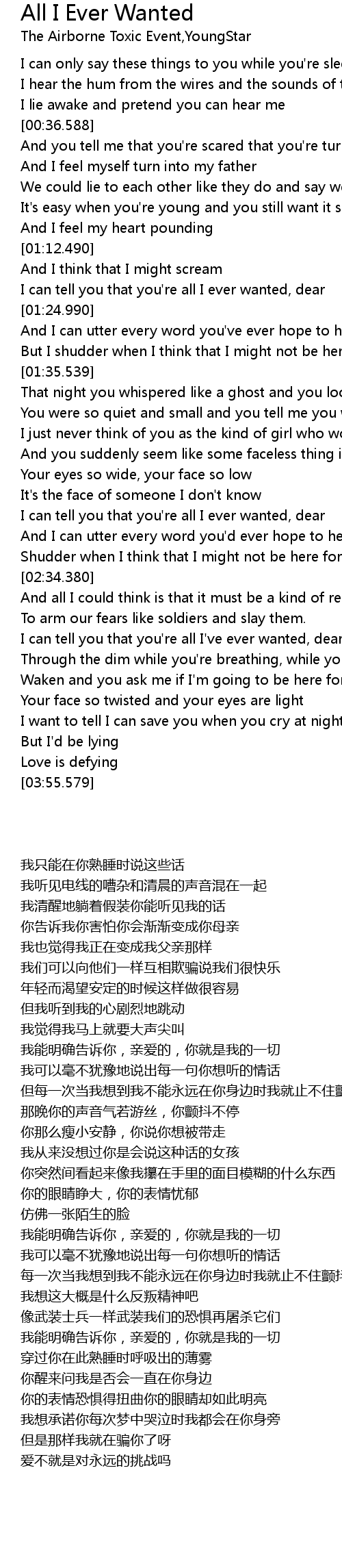 | [00:19.800] | I can only say these things to you while you' re sleeping |