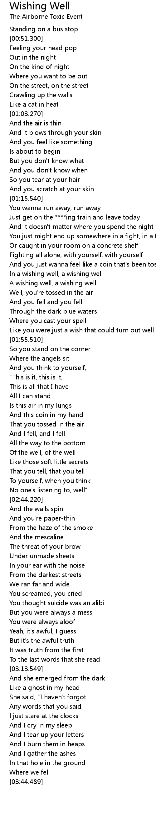 | [01:37.880] | In a wishing well, a wishing well |