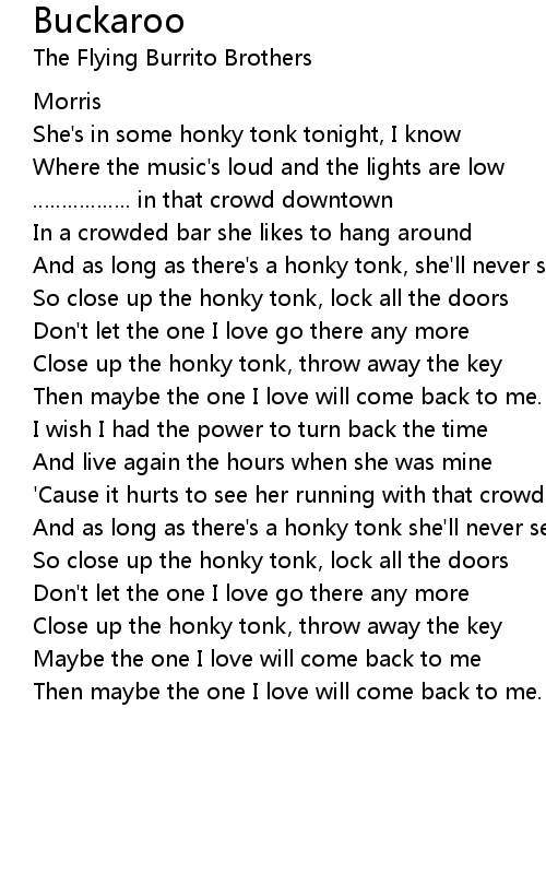 | So close up the honky tonk, lock all the doors | |