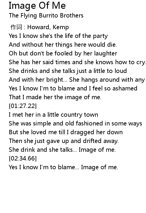 | [02:40.10] | Yes I know I' m to blame... Image of me. |