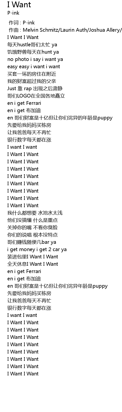 | [01:24.488] | zhuāng jìn bāo lǐ I Want I Want |