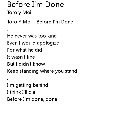 | [00:00.17] | Toro Y Moi - Before I'm Done |