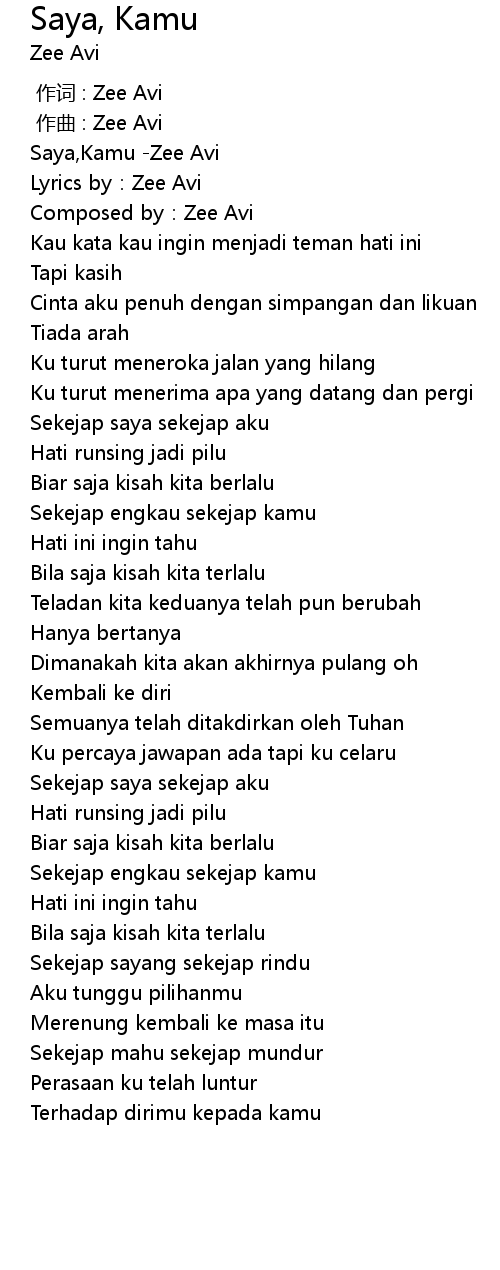 | [00:00.426] | Saya, Kamu Zee Avi |