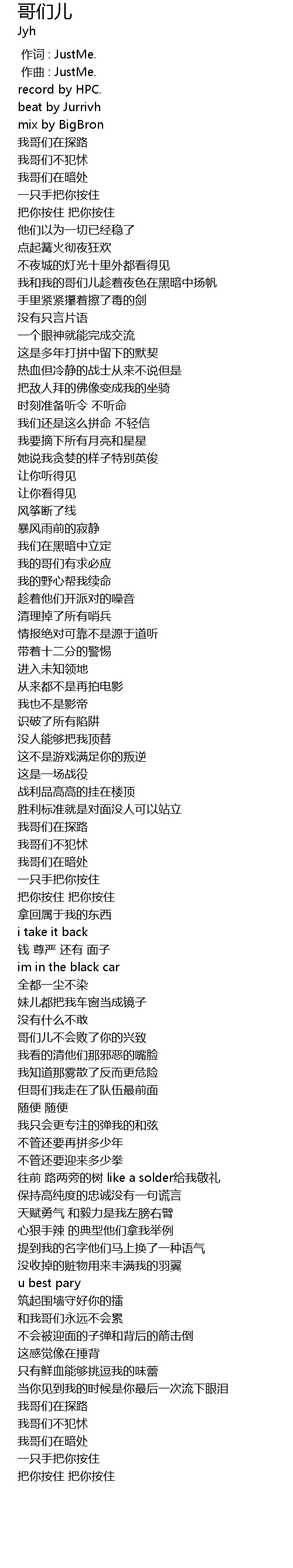 | [02:41.941] | wǒ gē men bù fàn chù |
