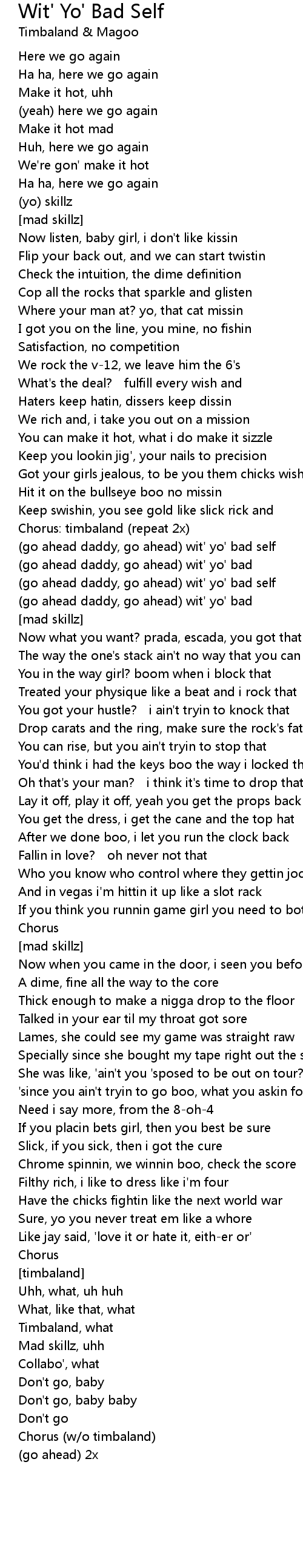 | (go ahead daddy, go ahead) wit' yo' bad self | |