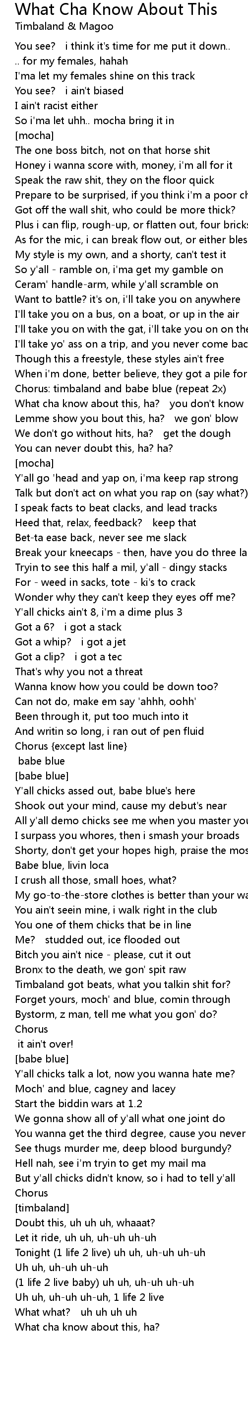 | Chorus: timbaland and babe blue (repeat 2x) | |