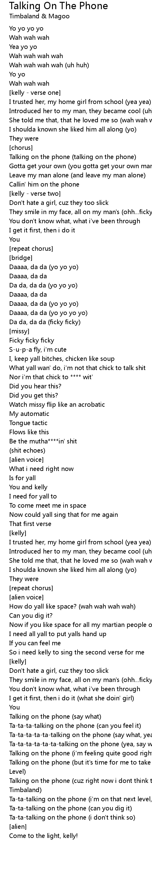 Ta-ta-ta-ta-ta-ta-talking on the phone (yea, say what, yo yo yo yo yo) |