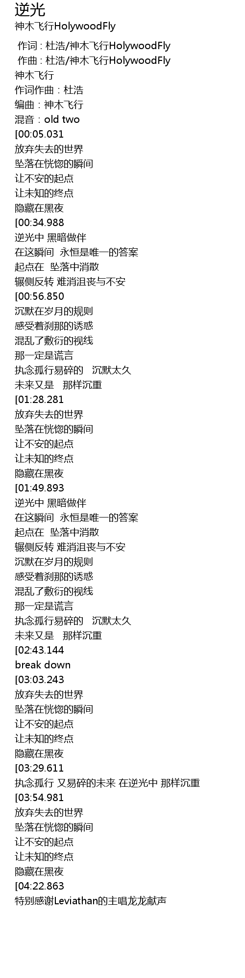 | [00:00.919] | zuò qǔ : dù hào shén mù fēi xíng HolywoodFly |