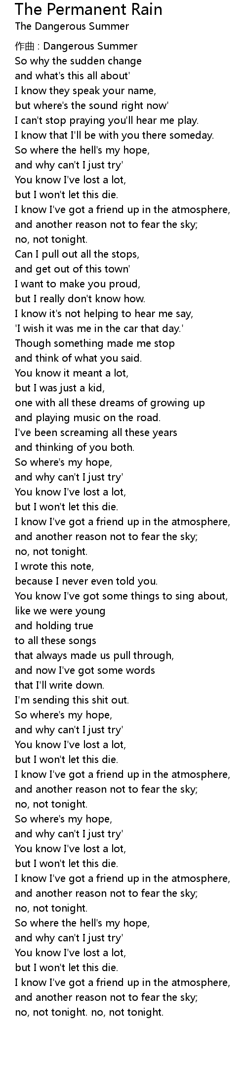 | 作曲 : Dangerous Summer | |