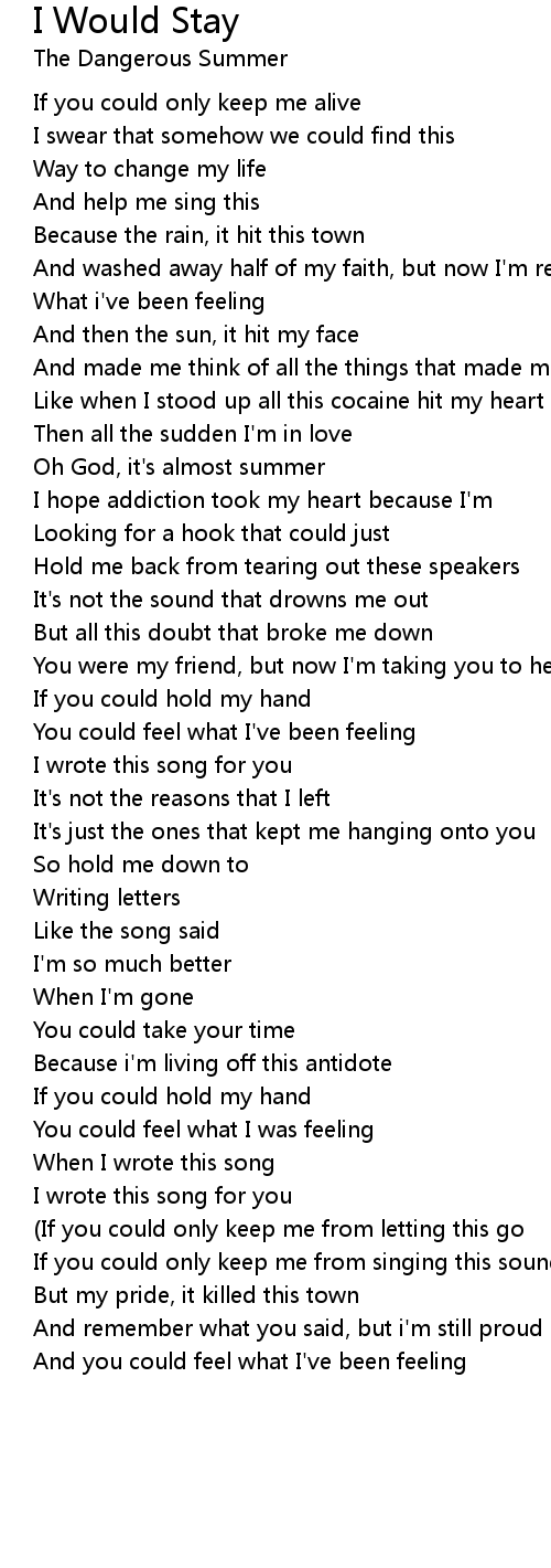 If you could only keep me alive |