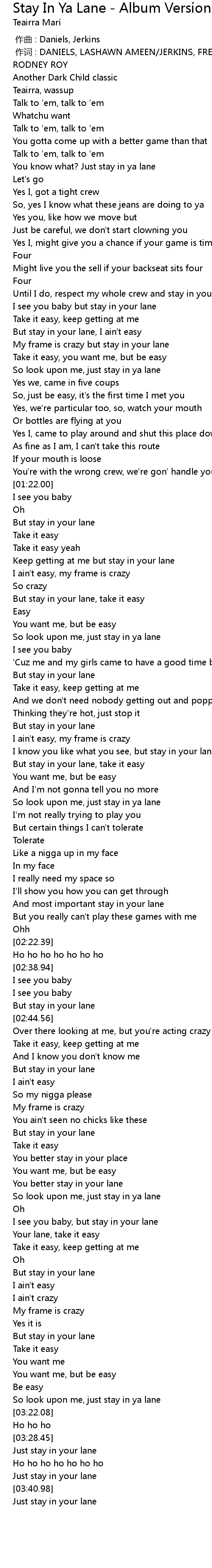 | Song | Stay In Ya Lane - Album Version (Explicit) |