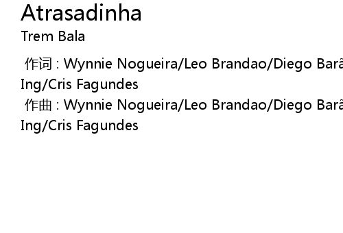 | [00:00.00-1] | 作词 : Wynnie Nogueira/Leo Brandao/Diego Barão/Jenner Melo/Lucas Ing/Cris Fagundes |