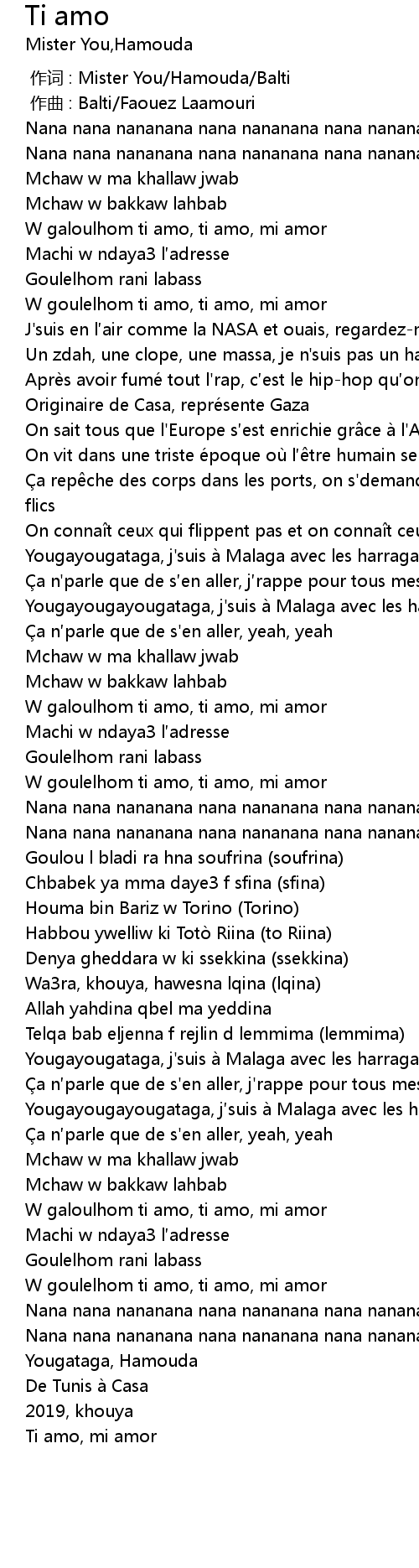 | [00:00.000] | 作词 : Mister You/Hamouda/Balti |