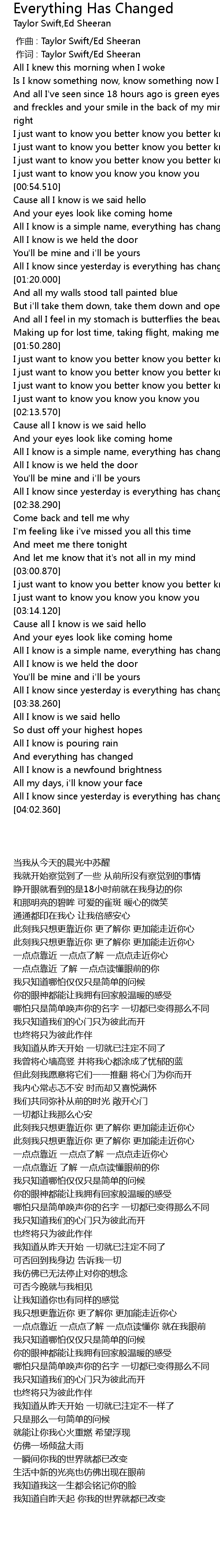 | [00:01.00] | 作词 : Taylor Swift/Ed Sheeran |