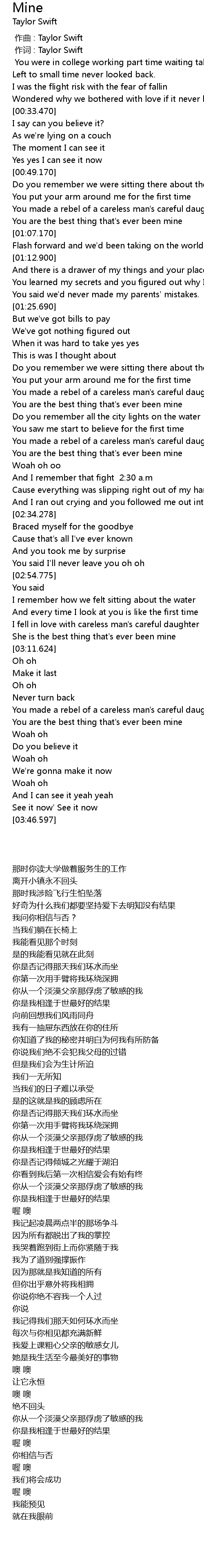 | [00:00.00] | zuo qu : Taylor Swift |