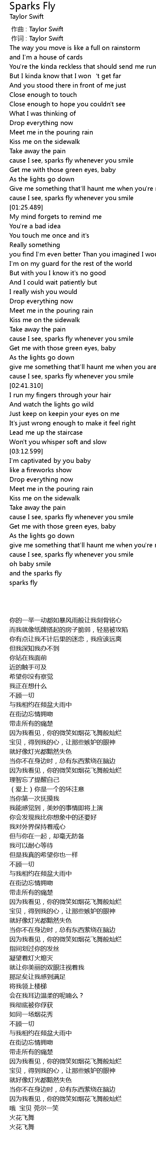 | [00:01.00] | 作词 : Taylor Swift |