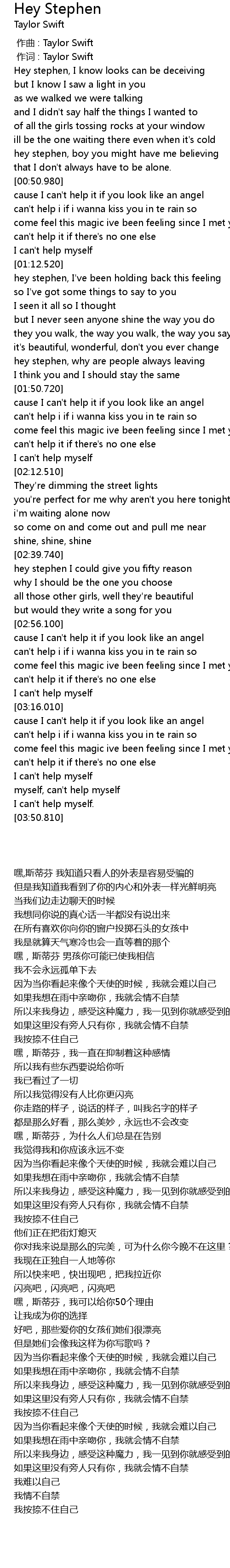 | [01:18.510] | hey stephen, I've been holding back this feeling |