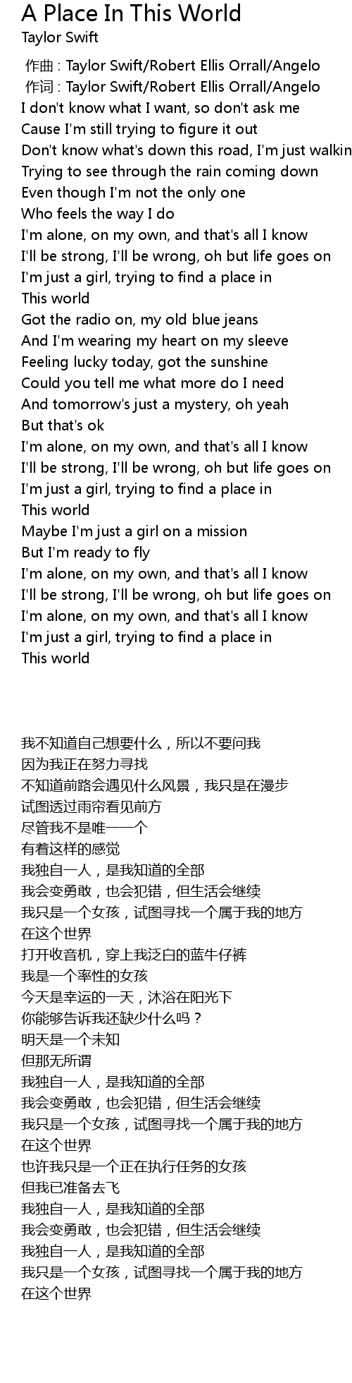 | [00:00.190] | 作词 : Taylor Swift/Robert Ellis Orrall/Angelo |