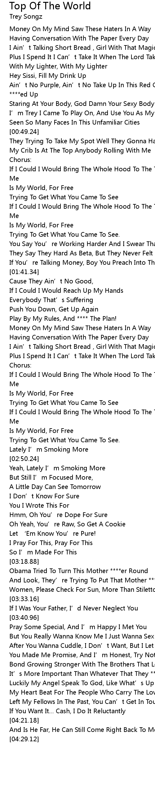 | [01:00.48] | If I Could I Would Bring The Whole Hood To The Top Of The World, With Me |