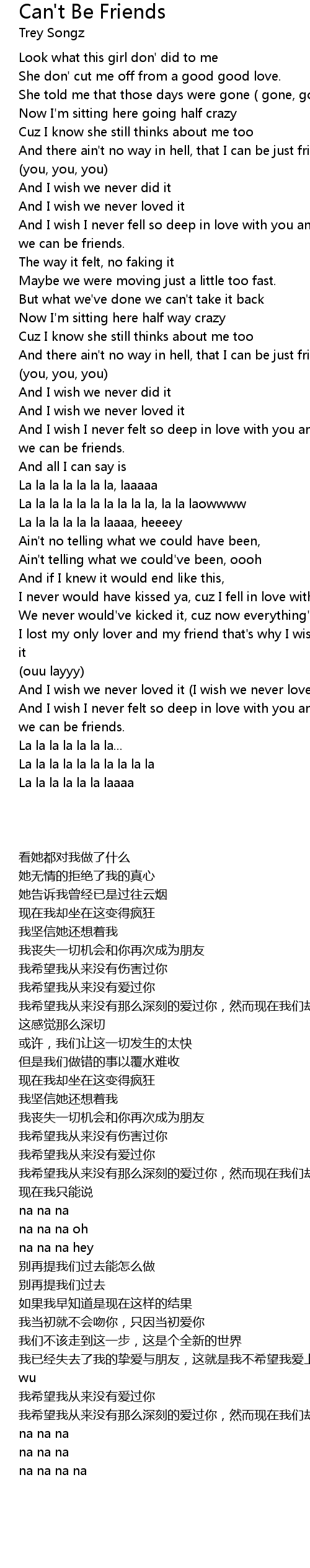 And I wish I never fell so deep in love with you and now ain't no way we can be friends. |