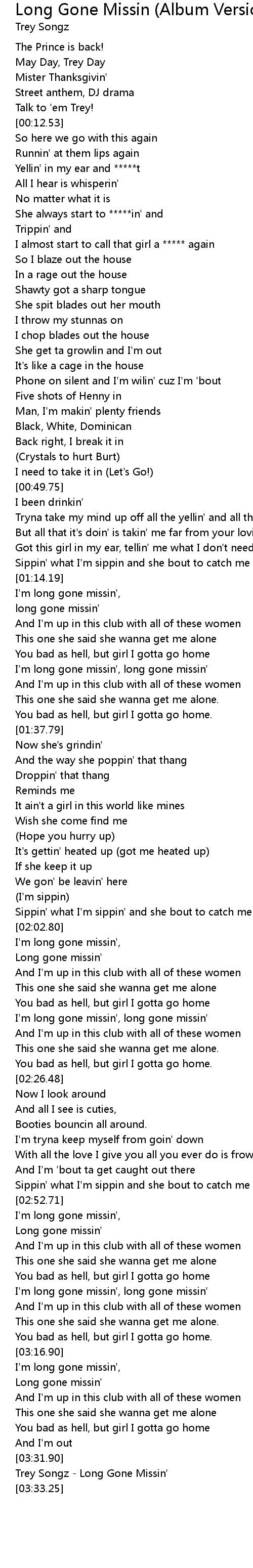 Trey Songz - Long Gone Missin' |