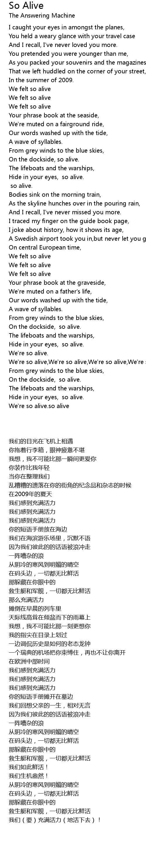We're so alive,We're so alive,We're so alive,We're so alive, |