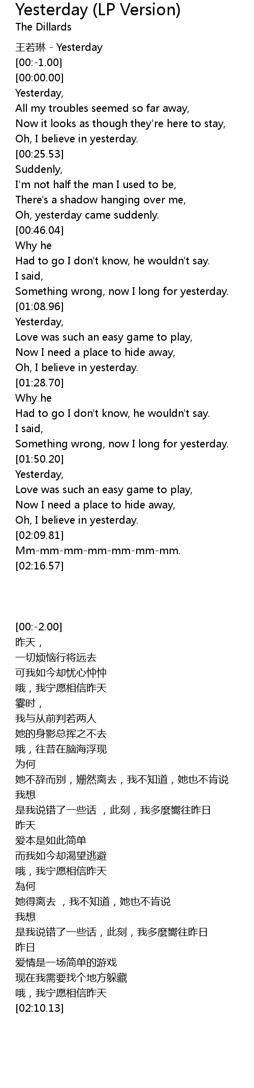 | [01:50.72] | Yesterday, |