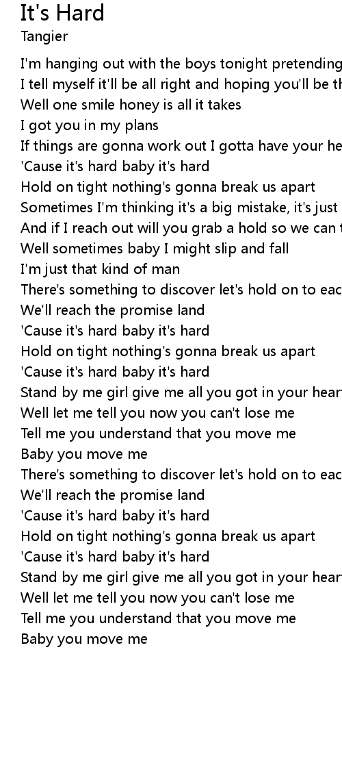 | 'Cause it's hard baby it's hard | |