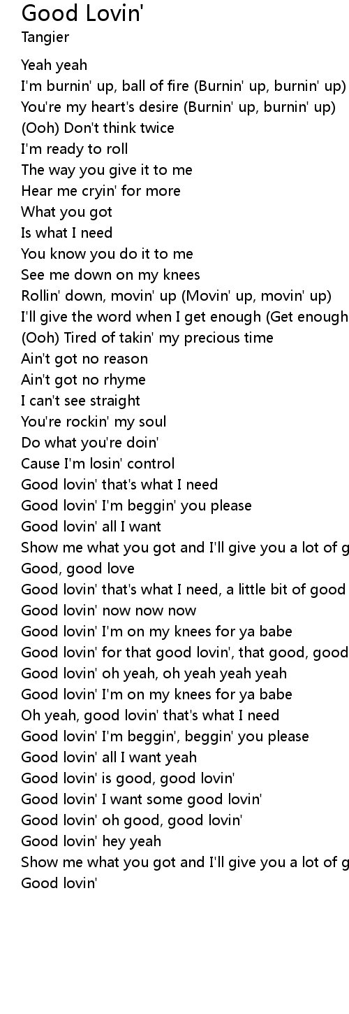 Good lovin' oh yeah, oh yeah yeah yeah |
