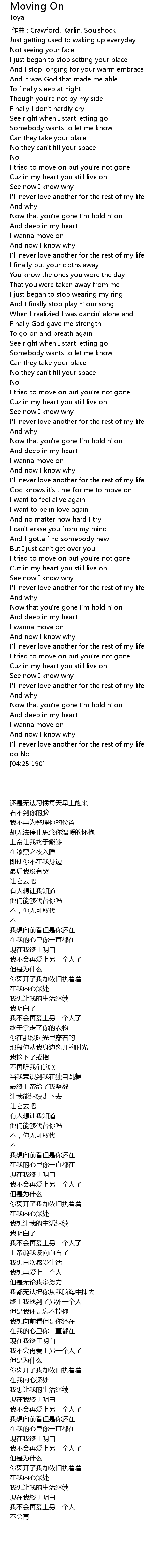 | [01:14.290] | Now that you're gone I'm holdin' on |