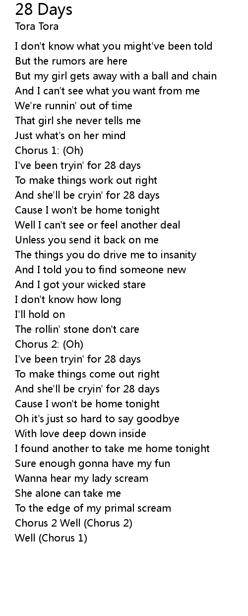 I've been tryin' for 28 days |