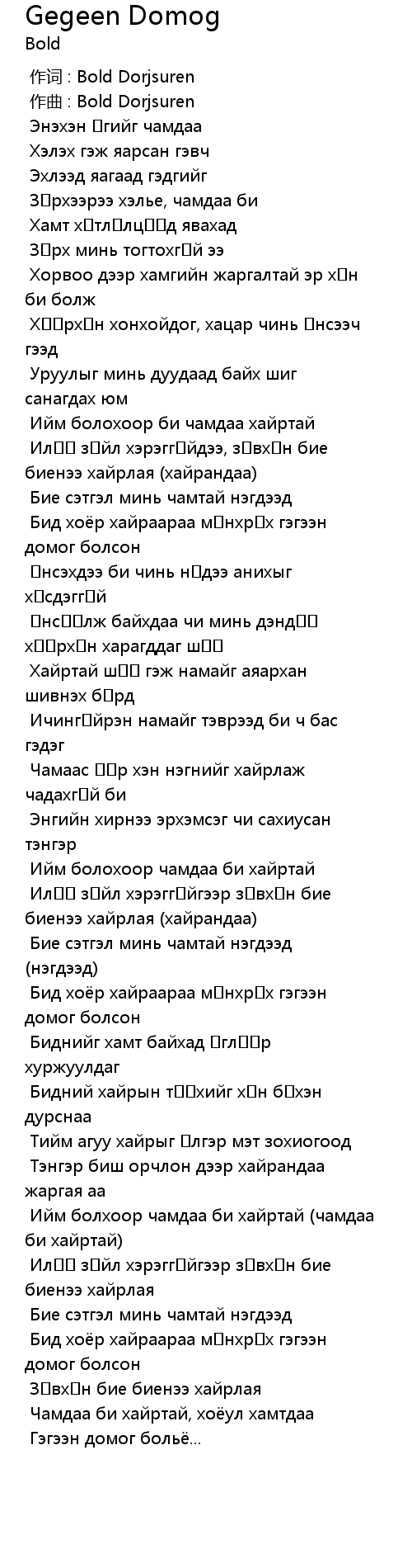 作词 : Bold Dorjsuren |