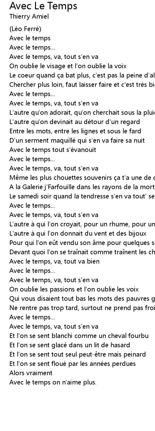 | Le coeur quand a bat plus, c' est pas la peine d' aller | |