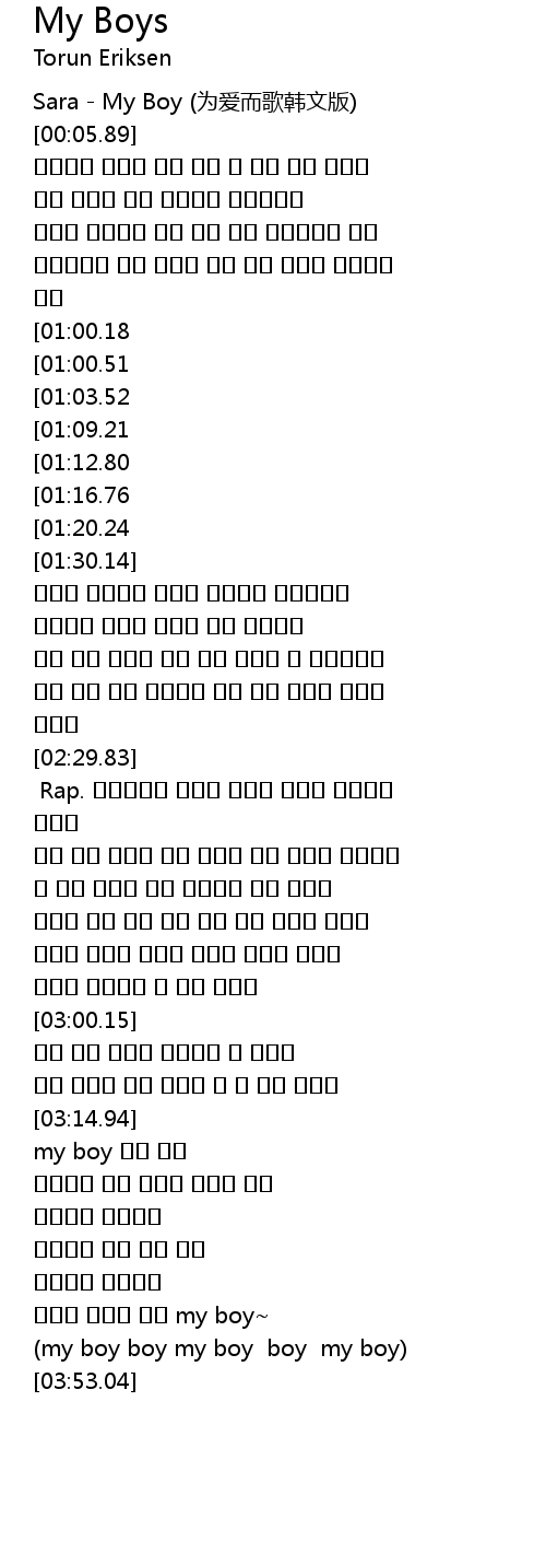 | [00:01.12] | Sara - My Boy (为爱而歌韩文版) |
