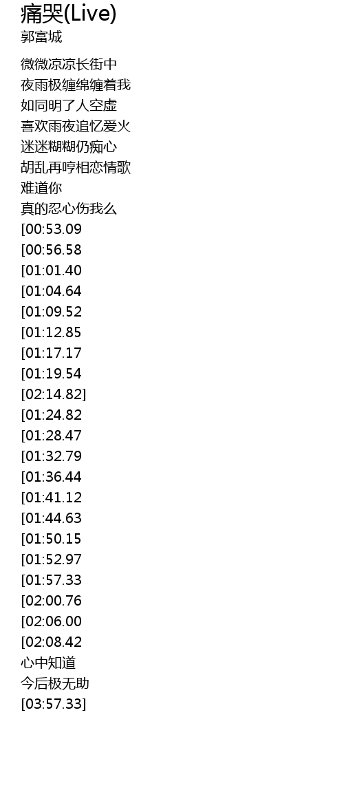 | [02:58.21][01:24.82] | 谁在痛哭 |